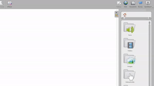 Quand une application est créée, elle est automatiquement sauvegardée dans la bibliothèque OpenBoard, afin que vous puissiez la réutiliser dans n’importe quel document. Vous les retrouverez sous le dossier Applications, dans un sous-dossier appelé “Web”