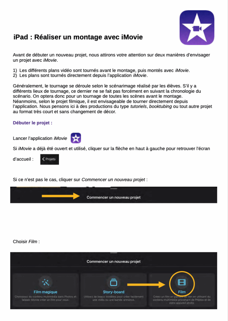 Voici un guide PDF exposant les principales fonctionnalités de l’app de montage iMovie sur iPad.