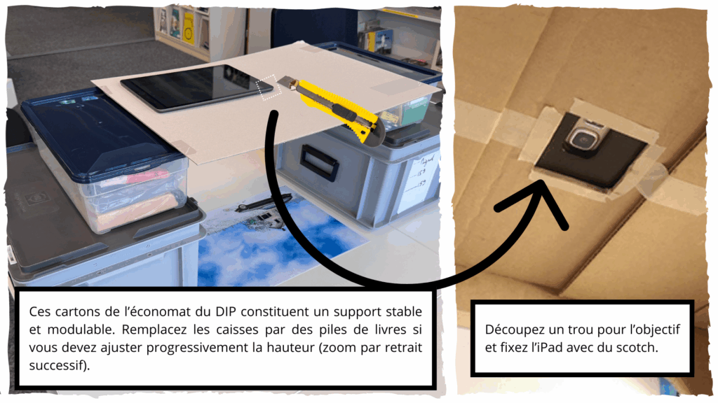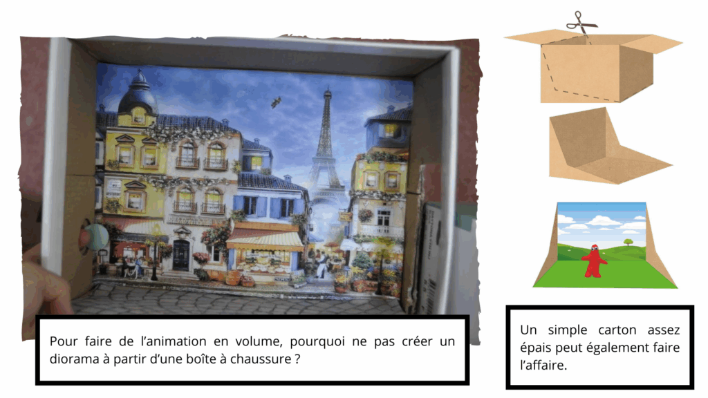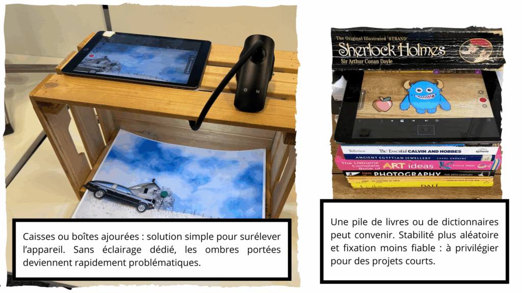 Sources des images : https://www.canva.com ; https://www.beafunmum.com/2015/01/shoebox-dollhouse-shoebox-craft/ ; https://www.stopmogo.com/how-to-position-your-ipad-and-phone-for-stop-motion-animation/ ; https://tongal.com/blog/community-guest-post/creating-a-classic-down-shooter-stop-mo-rig ; https://huehd.com/setmaking/
