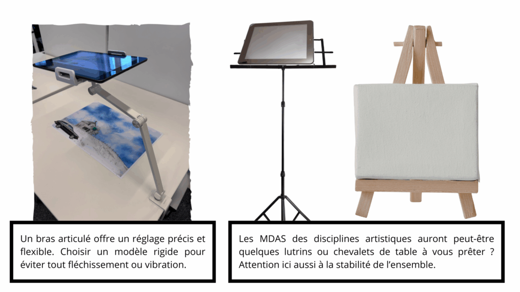 Le Stop Motion est avant tout un art de la débrouille. Recyclage et détournements sont donc tout à faits envisageables tant qu'on garde cet impératif en tête : rien ne doit bouger. L'usage abondant de scotch est recommandé. Vous trouverez ci-dessous quelques idées de dispositifs.