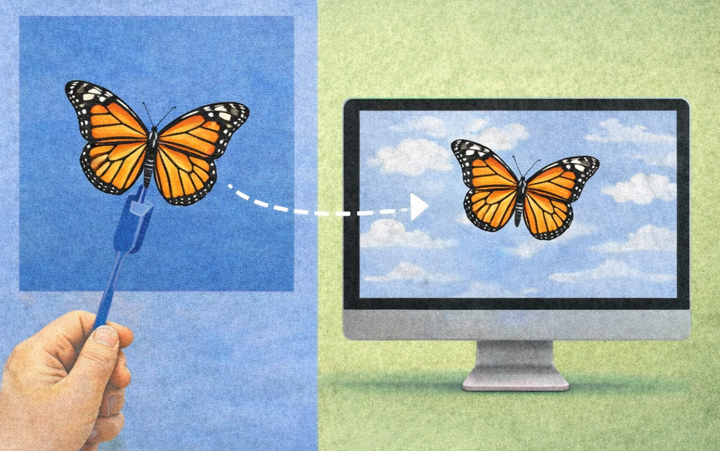 Autre astuce pour contourner les limitations de l’animation en volume : en exploitant la fonction fond vert/bleu d’iMovie, utiliser des supports de la même couleur (ficelles, pics à brochette, gants de vaisselle…) qui disparaîtront au montage. Résultat très dépendant de l’éclairage.